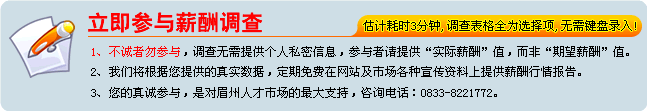 ★眉州人才市場薪酬調(diào)查,因?yàn)槟膮⑴c而加更精彩!